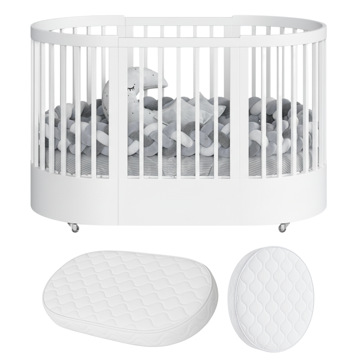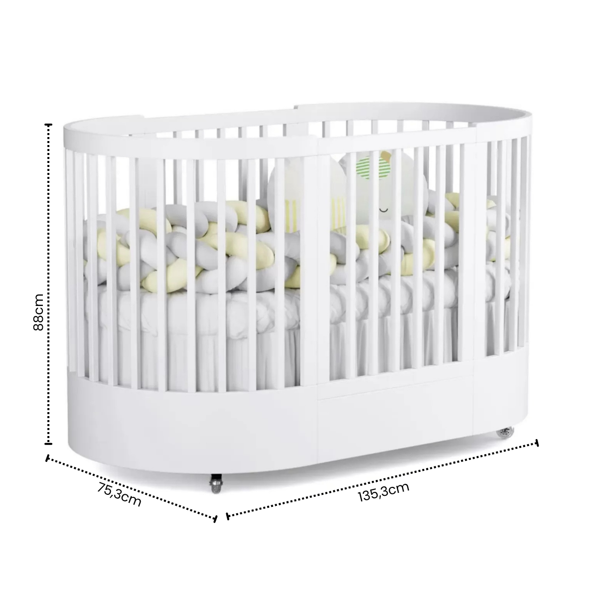 Estrutura reforçada em MDF de 20mm – máxima segurança e durabilidade Sistema 3 em 1 – transforma-se em miniberço, berço padrão e minicama 3 Regulagens de altura do estrado (46cm, 33,2cm e 20cm) – ajuste perfeito para cada fase do bebê Cantos arredondados e sem arestas – proteção total contra acidentes Ferragens invisíveis – acabamento limpo e sofisticado