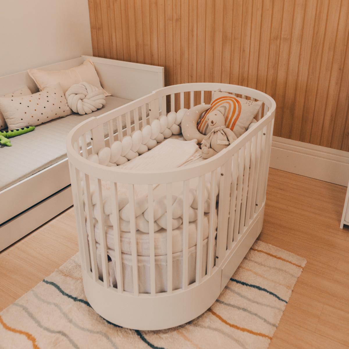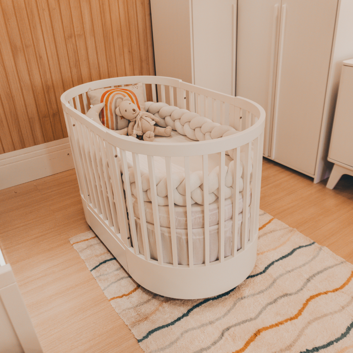 Inspirada no movimento das ondas, a Linha Wave traz leveza e modernidade ao quarto do bebê Design orgânico com curvas suaves que proporcionam aconchego Cores Disponíveis (Variantes): Branco Acetinado, Cinza, Mel e Nature Ideal para decorações contemporâneas e minimalistas