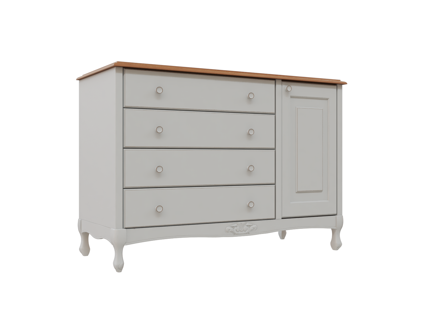 A Cômoda Ópera é o complemento perfeito para decorações que seguem a linha provençal ou clássica Seu design imponente conta com frentes de gaveta moldadas e detalhes ornamentais que refletem o alto padrão de fabricação da Cia do Móvel O tampo generoso acomoda perfeitamente o trocador, enquanto as gavetas profundas garantem que todo o enxoval esteja organizado com classe, tornando-a uma peça duradoura que transcende tendências passageiras